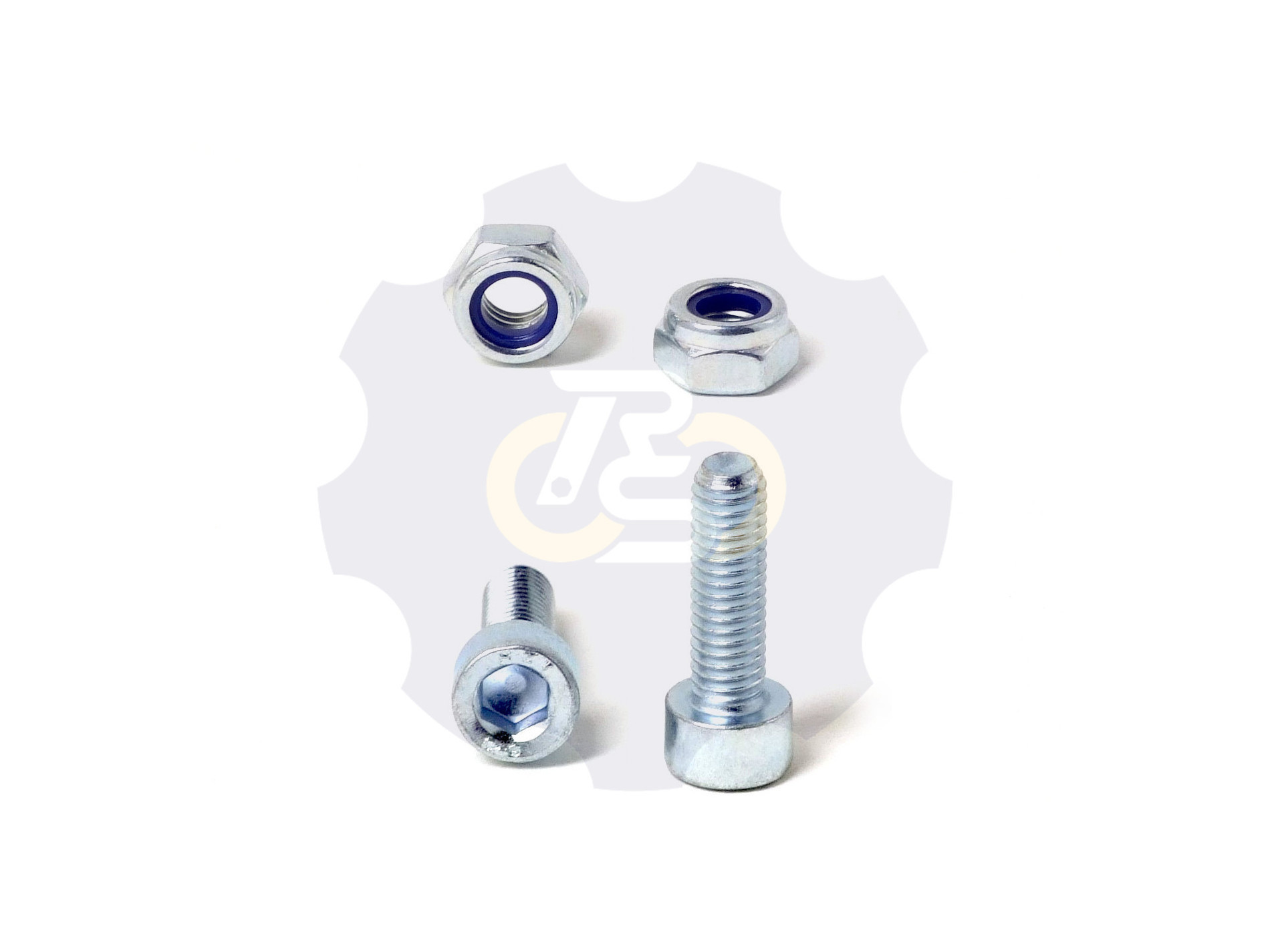 2 vienetai – M6 x 20 Zn Varžtas, cilindrine galva. + 2 vienetai – N6S Veržlė