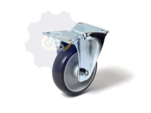 Poliuretanu (95° Shore A) dengtas ratukas su polipropileno ratlankiu, slydimo guolis (įvorė), pasukamas cinkuoto plieno kronšteinas (laikiklis) su dvejomis eilėmis atraminių guolių, tvirtinimo plokštelė 105×80 mm, 4 tvirtinimo skylės – D 9 mm ovalo formos (ilgis 11.5 mm) – tvirtinimo skylių atstumas tarp centrų 80×60 mm – 75×60 mm. Rekomenduojame montavimo paviršiuje gręžti skyles atstumu 80×60 mm tarp centrų.