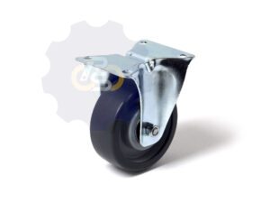 Poliuretanu (92° Shore A) dengtas ratukas su polipropileno ratlankiu, rutulinis guolis, pasukamas cinkuoto plieno kronšteinas (laikiklis) su dvejomis eilėmis atraminių guolių, tvirtinimo plokštelė 105×80 mm, 4 tvirtinimo skylės – D 9 mm ovalo formos (ilgis 11.5 mm) – tvirtinimo skylių atstumas tarp centrų 80×60 mm – 75×60 mm. Rekomenduojame montavimo paviršiuje gręžti skyles atstumu 80×60 mm tarp centrų.