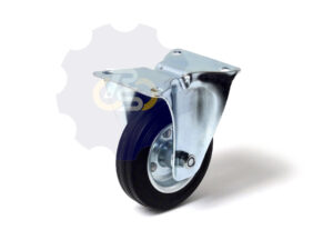 Juoda guma (85° Shore A) dengtas ratukas su cinkuoto plieno ratlankiu, ritininis guolis, pasukamas cinkuoto plieno kronšteinas (laikiklis) su dvejomis eilėmis atraminių guolių, su stabdžiu (fiksuoja ratuką ir kronšteiną), tvirtinimo plokštelė 105×80 mm, 4 tvirtinimo skylės – D 9 mm ovalo formos (ilgis 11.5 mm) – tvirtinimo skylių atstumas tarp centrų 80×60 mm – 75×60 mm. Rekomenduojame montavimo paviršiuje gręžti skyles atstumu 80×60 mm tarp centrų.