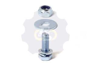 Termoplastine guma (85° Shore A) dengtas ratukas iš polipropileno (PP), slydimo guolis (įvorė – varžtas), pasukamas cinkuoto plieno kronšteinas (laikiklis) su dvejomis eilėmis atraminių guolių, su stabdžiu (fiksuoja ratuką ir kronšteiną), tvirtinimo skylė D10.6 mm (tvirtinamas vienu varžtu M10)