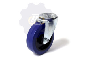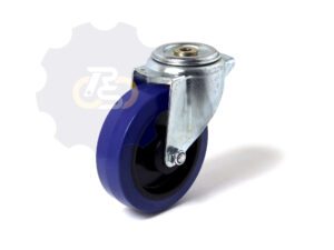 Mėlyna elastinga guma (70° Shore A) dengtas ratukas su poliamido ratlankiu, ašis 20 mm – ritininis guolis