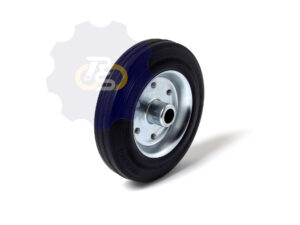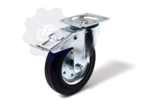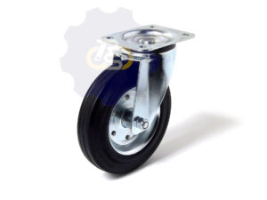 Juoda guma (85° Shore A) dengtas ratukas su cinkuoto plieno ratlankiu, ritininis guolis, fiksuotas (nepasukamas) cinkuoto plieno kronšteinas (laikiklis), tvirtinimo plokštelė 135×115 mm, 4 tvirtinimo skylės – D 11 mm ovalo formos (ilgis 13.5 mm) – tvirtinimo skylių atstumas tarp centrų 105×80 mm – 105×75 mm. Rekomenduojame montavimo paviršiuje gręžti skyles atstumu 105×80 mm tarp centrų.