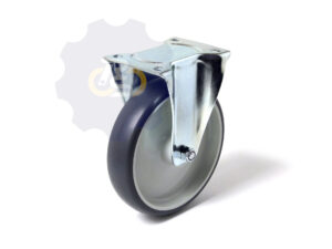 Poliuretanu (95° Shore A) dengtas ratukas su polipropileno ratlankiu, slydimo guolis (įvorė), pasukamas cinkuoto plieno kronšteinas (laikiklis) su dvejomis eilėmis atraminių guolių, tvirtinimo plokštelė 135×110 mm, 4 tvirtinimo skylės – D 11 mm ovalo formos (ilgis 13.5 mm) – tvirtinimo skylių atstumas tarp centrų 105×80 mm – 105×75 mm. Rekomenduojame montavimo paviršiuje gręžti skyles atstumu 105×80 mm tarp centrų.