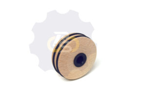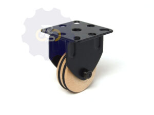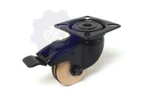 Buko medienos ratukas, dengtas dvejais poliuretano (gumos) žiedais (85° Shore A), slydimo guolis (įvorė – varžtas), juodos spalvos pasukamas cinkuoto plieno kronšteinas (laikiklis) su dvejomis eilėmis atraminių guolių, tvirtinimo plokštelė 60×60 mm, 4 tvirtinimo skylės – D 6.2 mm ovalo formos (ilgis 13 mm) – tvirtinimo skylių atstumas tarp centrų 48×48 mm – 38×38 mm. Rekomenduojame grežti skyles atstumu 46×46 mm tarp centrų.