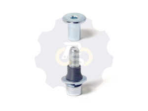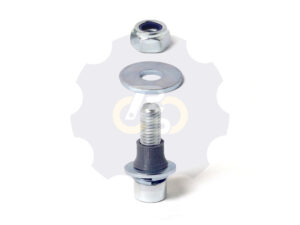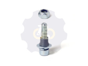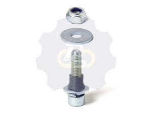 Dvigubas, PVC guma (85° Shore A) dengtas ratukas iš polipropileno (PP), slydimo guolis (įvorė – varžtas), pasukamas cinkuoto plieno kronšteinas (laikiklis) su dvejomis eilėmis atraminių guolių, su stabdžiu (fiksuoja ratuką ir kronšteiną), tvirtinimo skylė D10.5 mm (tvirtinamas vienu varžtu M10)