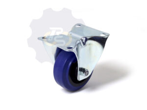 Mėlyna elastinga guma (70° Shore A) dengtas ratukas su poliamido ratlankiu, ritininis guolis, pasukamas cinkuoto plieno kronšteinas (laikiklis) su dvejomis eilėmis atraminių guolių, su stabdžiu (fiksuoja ratuką ir kronšteiną), tvirtinimo plokštelė 105×80 mm, 4 tvirtinimo skylės – D 9 mm ovalo formos (ilgis 11.5 mm) – tvirtinimo skylių atstumas tarp centrų 80×60 mm – 75×60 mm. Rekomenduojame montavimo paviršiuje gręžti skyles atstumu 80×60 mm tarp centrų.