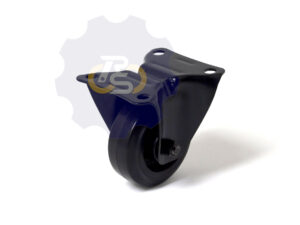 Juoda elastinga guma (70° Shore A) dengtas ratukas su poliamido ratlankiu, ritininis guolis, juodos spalvos pasukamas cinkuoto plieno kronšteinas (laikiklis) su dvejomis eilėmis atraminių guolių, su stabdžiu (fiksuoja ratuką ir kronšteiną), tvirtinimo plokštelė 105×80 mm, 4 tvirtinimo skylės – D 9 mm ovalo formos (ilgis 11.5 mm) – tvirtinimo skylių atstumas tarp centrų 80×60 mm – 75×60 mm. Rekomenduojame montavimo paviršiuje gręžti skyles atstumu 80×60 mm tarp centrų.