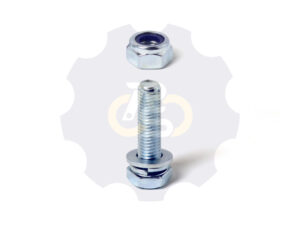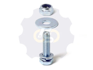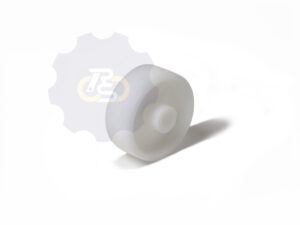 Baltas polipropileno (PP) ratukas, slydimo guolis (įvorė), pasukamas cinkuoto plieno kronšteinas (laikiklis) su dvejomis eilėmis atraminių guolių, su stabdžiu (fiksuoja ratuką ir kronšteiną), tvirtinimo skylė D10.8 mm (tvirtinamas vienu varžtu M10)